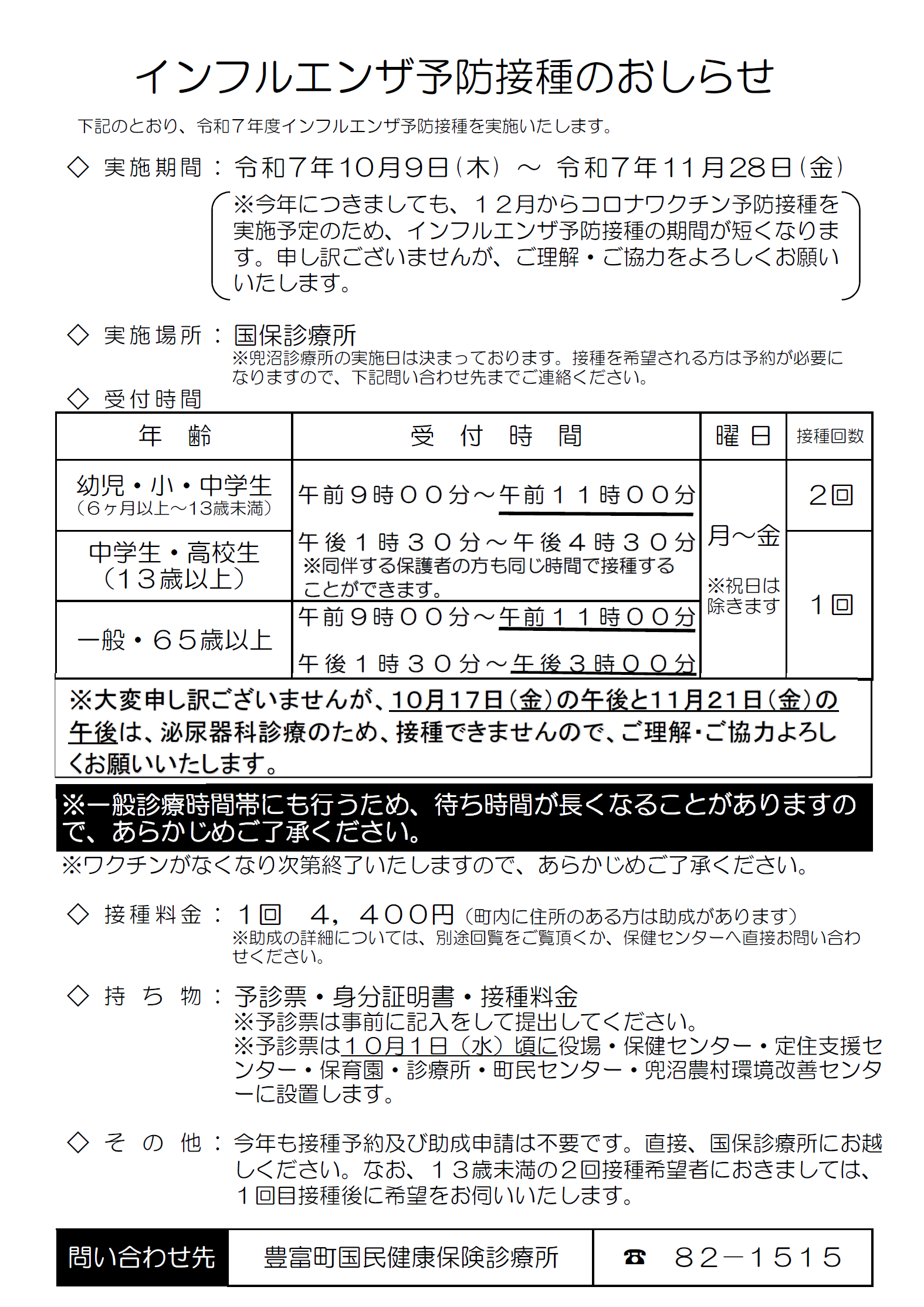 2025年9月19日インフルエンザ予防接種のお知らせ(~11月28日まで)2025年9月1日令和7年度採用豊富町会計年度任用職員募集のお知らせ(応募延長)2024年5月31日長期処方・リフィル処方せんについて